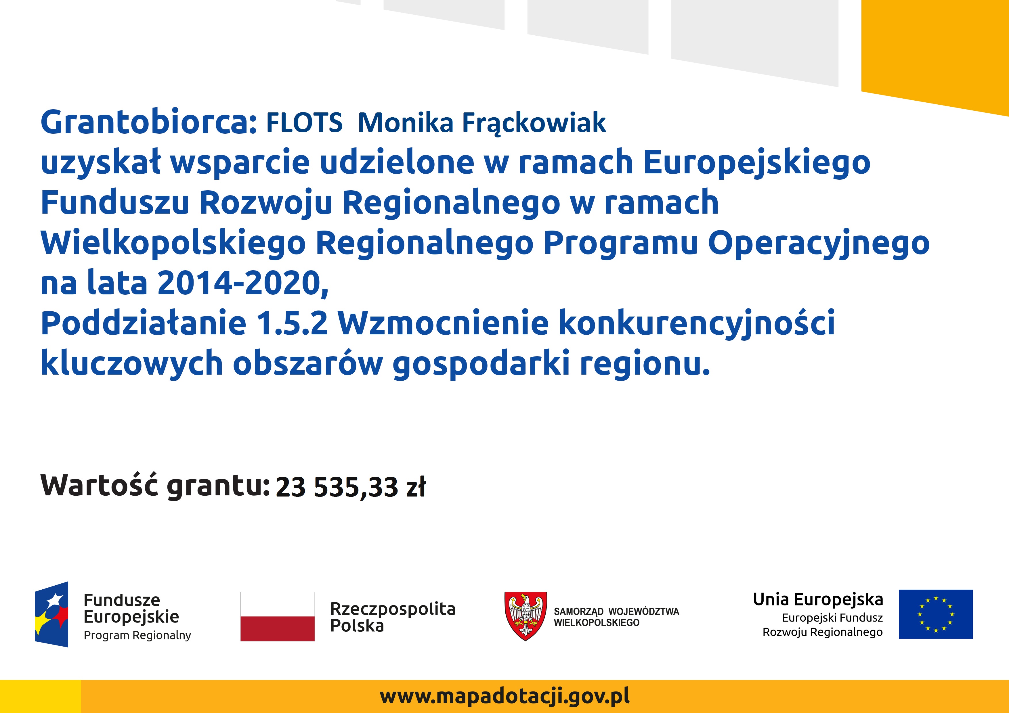 Administratorem Państwa danych osobowych jest FLOTS" Monika Frąckowiak z siedzibą w Przysiece Polskiej, ul. Piaskowa 18. We wszystkich sprawach dotyczących przetwarzania danych osobowych oraz korzystania z praw związanych z ich przetwarzaniem proszę o kontakt poprzez adres e-mail: biuro@flots.pl. Państwa dane będą przetwarzane w celu wystawienia faktury, na podstawie obowiązku prawnego ciążącego na Administratorze – art. 6 ust. 1 lit. c Rozporządzenia Ogólnego o Ochronie Danych Osobowych (RODO). Podanie danych jest wymogiem ustawowym, niezbędne do wystawienia dokumentu sprzedaży (faktury).